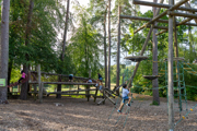 Both playgrounds are strategically positioned so parents can relax while maintaining clear sight lines. It's the perfect setup for families with children of different ages – everyone finds their ideal challenge level.