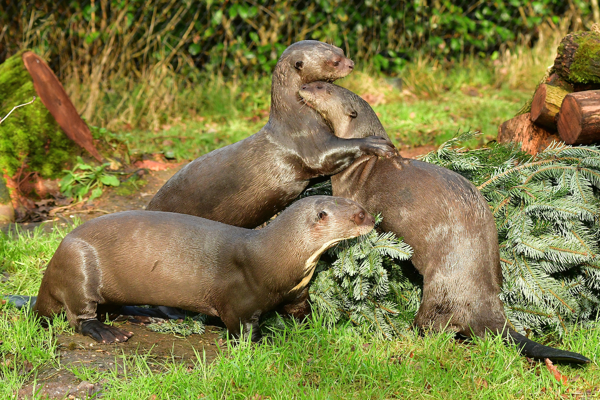 Found in South America, Giant River Otters are the largest of the 13 species of otter reaching up to 6ft in length. Although mostly covered with dark chocolate coloured short fur, they do have a distinctive cream coloured throat patch. This throat patch can work as an identifier, as no two will be the same. Their fur is dense and extremely luxurious with two layers and the outer layer is made up of their guard hairs which protect the second layer and skin from the water. The inner layer is short and dense for warmth.